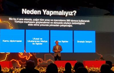 Cumhurbaşkanlığı İletişim Başkanı Altun, “Biz şuna inanıyoruz ki eğer bu yürüyüş devam ederse yeni dönem Türkiye’nin dönemi olacak. Çünkü Türkiye, gerçekten eskisi gibi değil. Gerçekten büyük ve güçlü bir ülke bugün itibarıyla sadece oyunbozan değil, oyun kuran bir ülke. Sadece bir istikrar adası değil aynı zamanda istikrarlaştırıcı bir güç. Bu küresel sömürü sisteminin en temel aygıtlarından biri olan faiz ekonomisine karşı Sayın Cumhurbaşkanımız, daha bir hafta öncesinde ‘battık’, ‘bittik’ nâraları atılırken birden bire bütün dünyanın ağzını açık bırakacak şekilde birkaç adımla, birkaç çözüm önerisiyle kararlı siyasi duruş sergilemiş oldu. Bu anlamda bağımsız ekonomi modelinin nasıl işleyeceğine ilişkin kararlılık ortaya konulmuş oldu. Kamu diplomasisi, ulusal ve uluslararası ilişkiler, halkla ilişkiler, stratejik iletişim ve kriz yönetimi alanlarında bütün teknolojik imkânları ve araçları kullanacağız. 360 derecelik bir yaklaşımla ‘Türkiye’ markasını güçlendirmek, dünyada anlatıp etkinleştirmek noktasında gayret sarf edeceğiz. Ülkemizin bir dünya gücü ve küresel aktör olmasında gayret sarf edeceğiz”