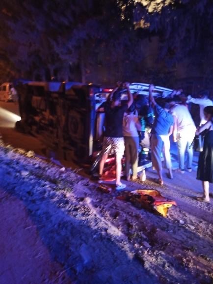 İSKENDERUNDA AMBULANS DEVRİLDİ KAZA UCU ATLATILDI. (AHMET SEHER/HATAY-İHA)