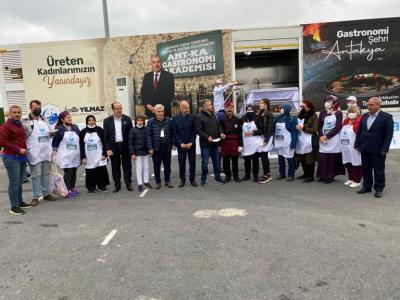 Antakya Belediyesi tarafından organize edilen workshop alanında da İstanbullularla bir araya gelen Başkan Yılmaz, workshop kapsamında pişirilen “Öcce ve Kimyonlu Biberli Aş”ın tadına baktı. Katılanlara hediyelerini takdim etti.