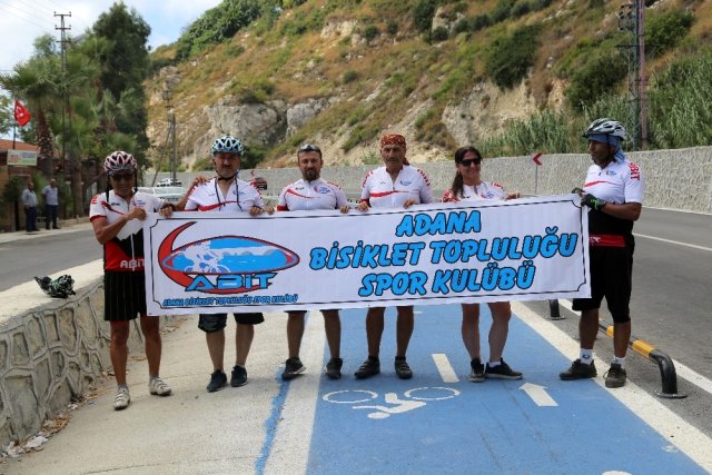 Adana Bisiklet Topluluğu Spor Kulübü, Hatay‘da bulunan Türkiye’nin en uzun bisiklet yolunda ‘kadın cinayetleri ve bisikletli ölümler son bulsun’ diye pedal çevirdi.