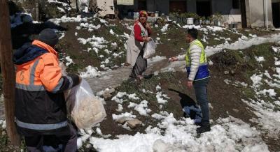 Yaşam şartlarını olumsuz etkileyen kar yağışı dolayısıyla yaşam koşulları zorlaşan vatandaşları ziyaret ederek ekmek dağıtan ekipler, bir yandan mahalle sakinlerinin ihtiyaçlarını karşılarken, bir yandan da ulaşımın aksamaması için yollarda temizlik çalışmaları gerçekleştirdi.