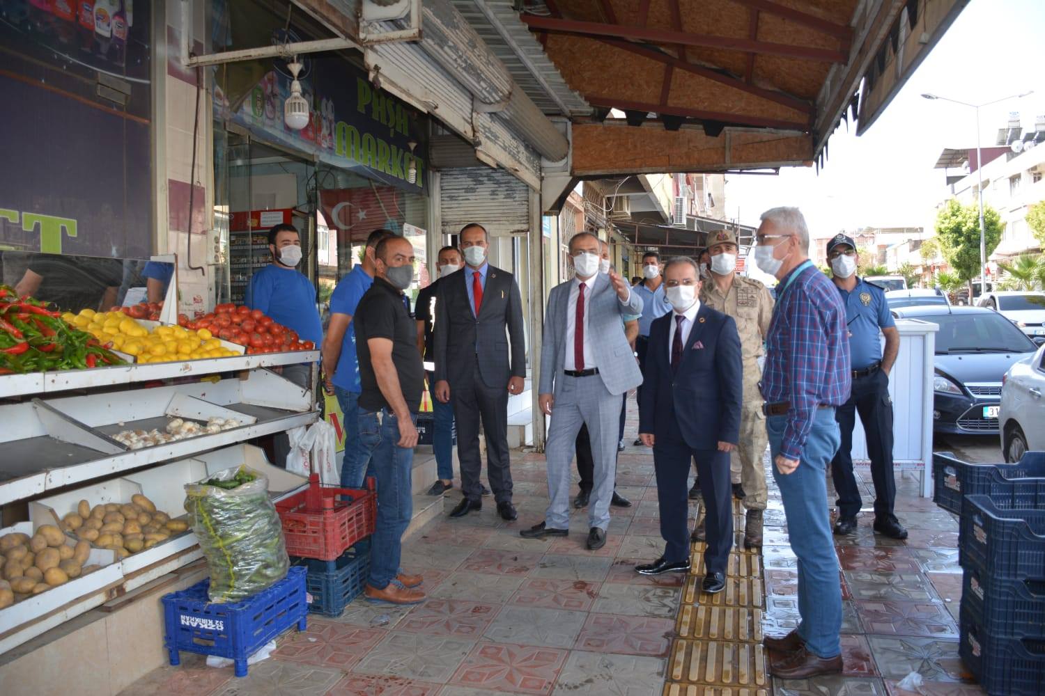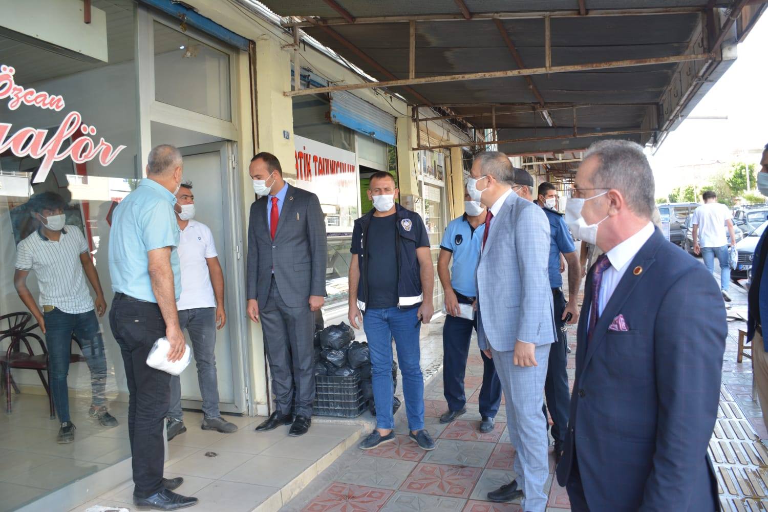 Yapılan denetimlerde esnafların ve vatandaşların maske takıp takmadıkları kontrol edilip sosyal mesafe kurallarına uyulması konusunda uyarılarda bulunuldu.