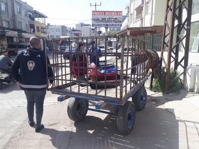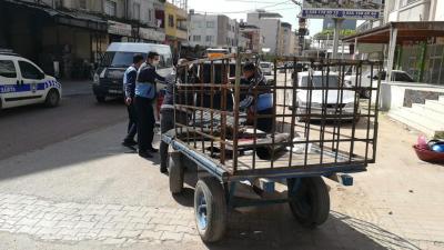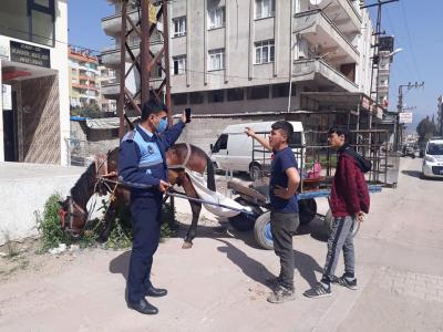 Kırıkhan Belediyesi Zabıta Müdürlüğü ekipleri şehir merkezinde ve mahalle aralarında at arabalarına taviz vermiyor.
