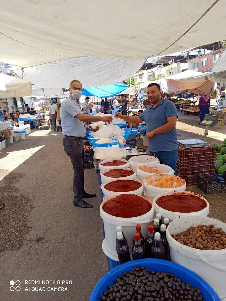 pazarlarında vatandaşlara ve Pazar esnaflarına maske dağıtımı, alışverişe gelen