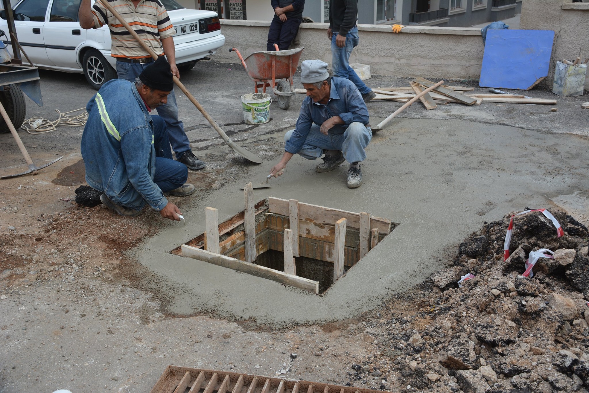Kırıkhan belediyesi fiziki nedenlerle bozulan asfaltlarda yama çalışmaları ve yağmur suyu tahliye boru döşeme çalışmalarına devam ediyor.