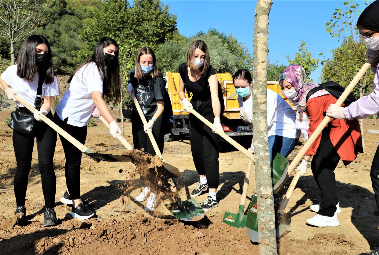 FİDAN KARDEŞLİĞİ PROJESİYLE KILAVUZ GENÇLİK BÜNYESİNDE EĞİTİM GÖREN GENÇLER, HATAY’DAKİ ORMAN YANGININA DİKKATİ ÇEKMEK İÇİN YÜZLERCE FİDANI TOPRAKLA BULUŞTURDU. (FEHİME KARTAL/KOCAELİ-İHA)