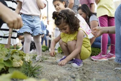 Çocukların çapa yapma, sulama, tohum ekme, fide dikme, herek hazırlama, yabani ot temizliği ve sebze hasadı gibi çiftçiliğin temel aşamalarını deneyimlediği etkinlikte börülce tohumu ile patlıcan fidesinin ekimi yapıldı.