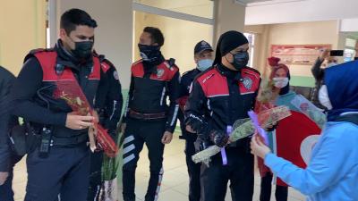 Kendilerine çiçek de veren öğrencilerin sürprizi karşısında şaşkınlık yaşayan polisler, gençlere her zaman yanınızdayız mesajı verdiler. Sürpriz kutlamanın sonunda polisler ile öğrenciler hatıra fotoğrafı çektirdi.