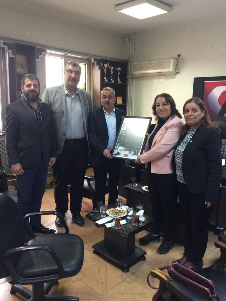 MHP Defne İlçe Başkanı Ferit KAPLAN, Kadın Kolları Başkanı Mehtap YASİNOĞLU ve Yönetim Kurulu Üyeleri, 24 Kasım Öğretmenler Günü Defne İlçe Milli Eğitim Müdürü Kemal Gülistan’ı ziyaret ederek Öğretmenler Gününü kutladı ve yapılan çalışmalardan dolayı Kendisine teşekkür etti. Ziyarette Ayrıca; Kadın Kolları Başkanı Mehtap YASİNOĞLU Hanımefendi, İlçe Milli Eğitim Müdürü Kemal Gülistan Bey’e BAŞ ÖĞRETMEN Mustafa Kemal ATATÜRK’ün portresini hediye etti. İlçe Müdürü Kemal Gülistan ziyaretten dolayı ve hediye için duyduğu memnuiyeti dile getirdi.