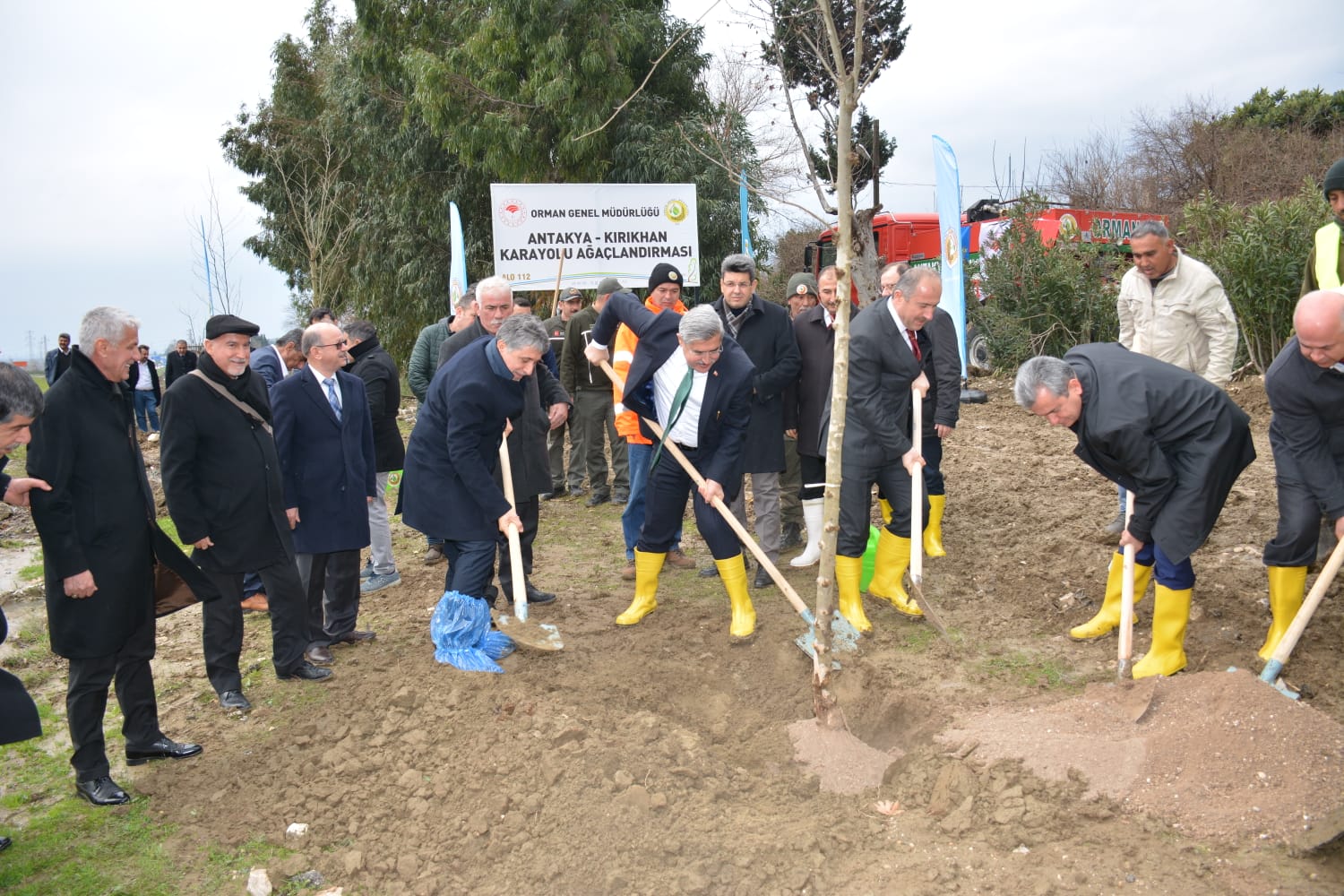 Yapılan konuşmaların ardından, Kırıkhan – Reyhanlı yolu arası ve Topboğazı – Antakya Organize Sanayi arasına çam dikme çalışmaları başlandı.