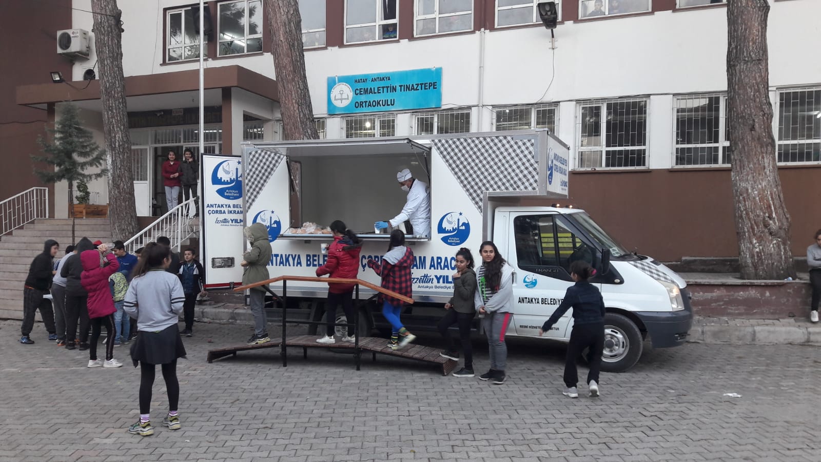 Antakya Belediyesi’nden konuyla ilgili yapılan açıklamaya göre; “Mobil Çorba Aracımız her gün okul önlerinde, hastanelerde, çarşı bölgelerinde, semt pazarlarında, sanayi bölgelerinde, öğrencilerimize, hasta yakınlarımıza, esnafımıza ve dileyen tüm hemşerilerimize ücretsiz olarak ikramda bulunuyor.