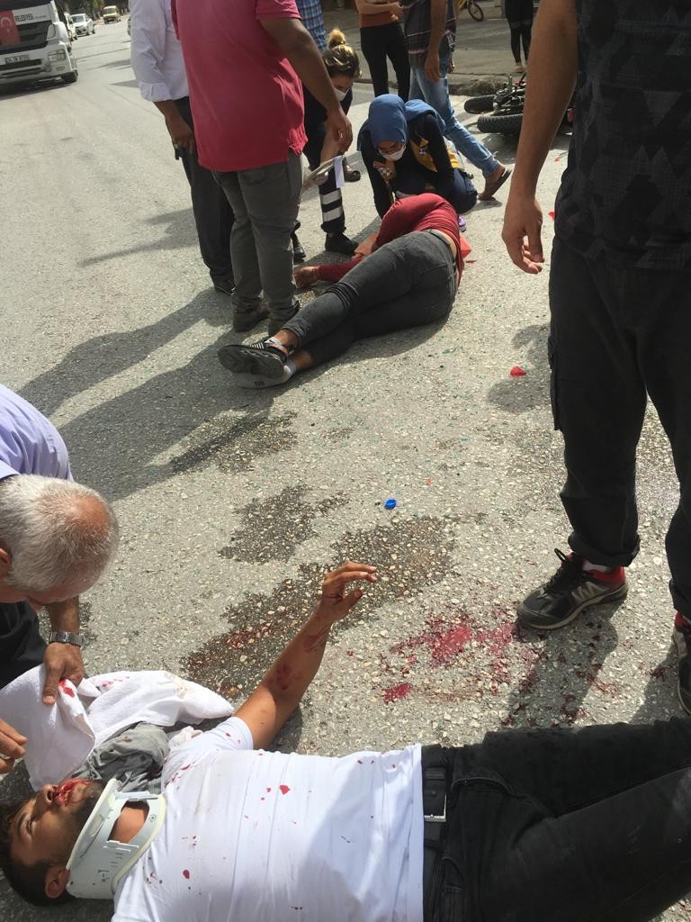 HATAY’IN SAMANDAĞ İLÇESİNDE OTOMOBİLE ÇARPAN MOTOSİKLETİN SÜRÜCÜSÜ İLE YANINDAKİ KİŞİ YARALANDI. (ALİCAN GÜMÜŞ/HATAY-İHA)