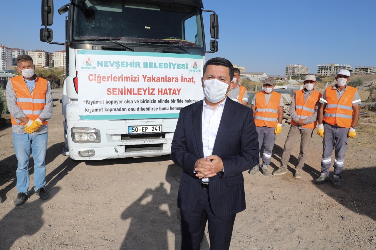 Hafta sonu PKK’lı teröristlerce çıkartılan yangınların ardından sosyal medya hesaplarından Hatay için fidan kampanyası başlatan Nevşehir Belediye Başkanı Rasim Arı, Hatay’a bir tır fidan gönderdi.