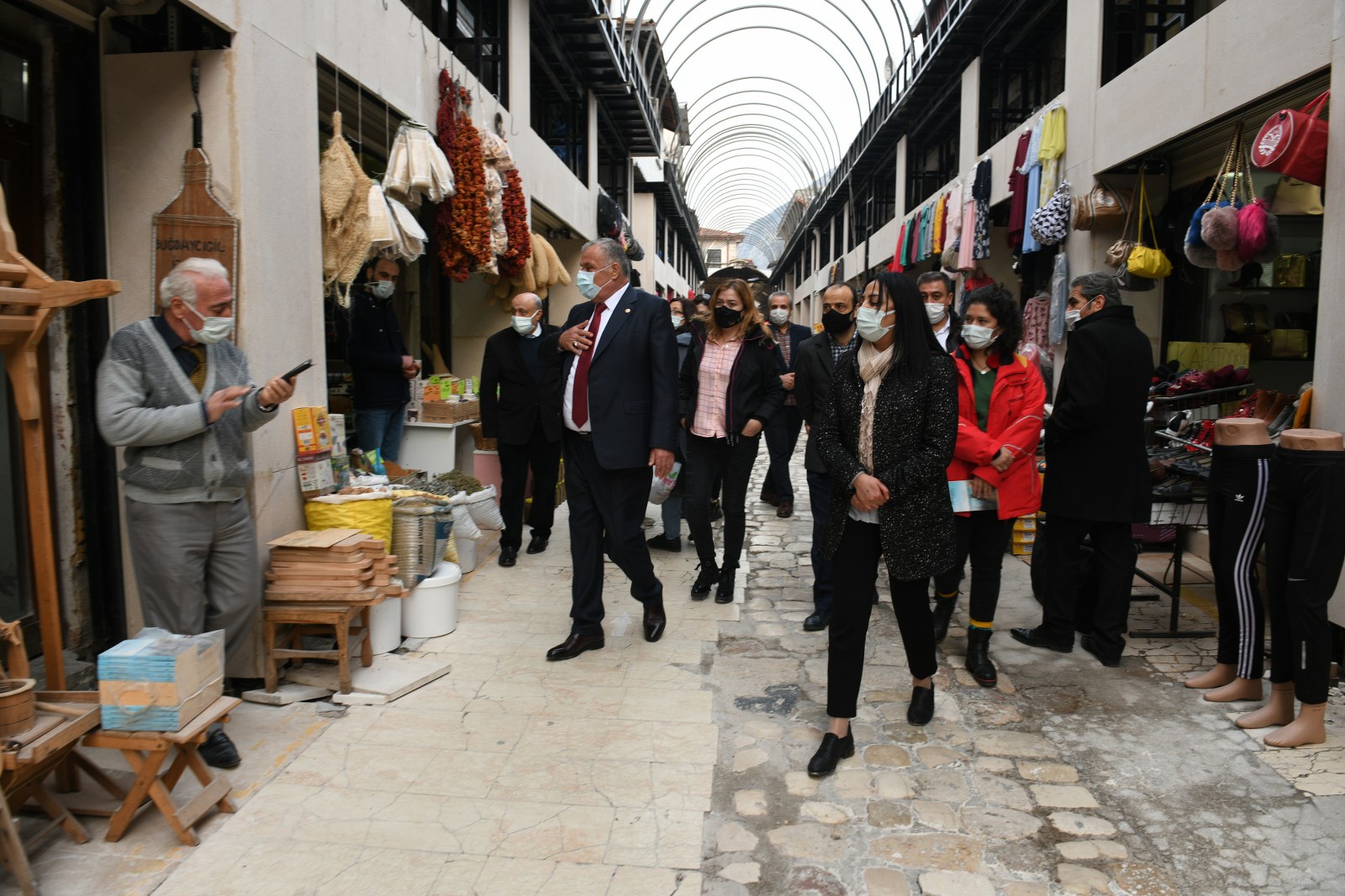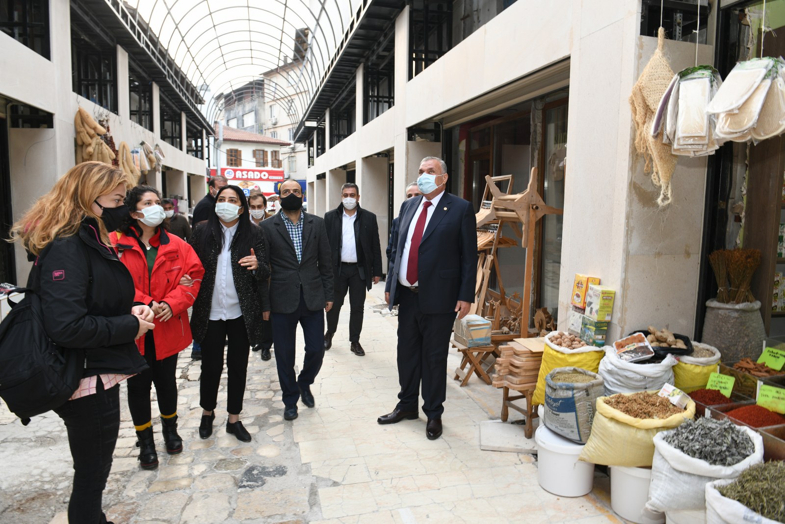 Heyet çarşı içerisinde hizmet veren tüm esnafı tek tek ziyaret ederek hayırlı işler, bol kazançlar dileğinde bulunurken bazı el sanatları atölyelerinde de yürütülen çalışmalar hakkında bilgi aldılar. Ziyaretler esnasında esnafla sık sık sohbet eden Milletvekili Çelik ve Başkan Yılmaz esnafla hatıra fotoğrafları çekildi.