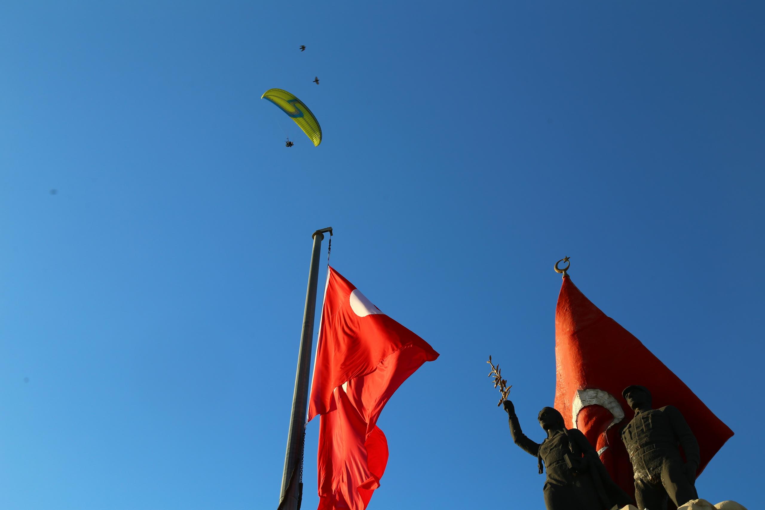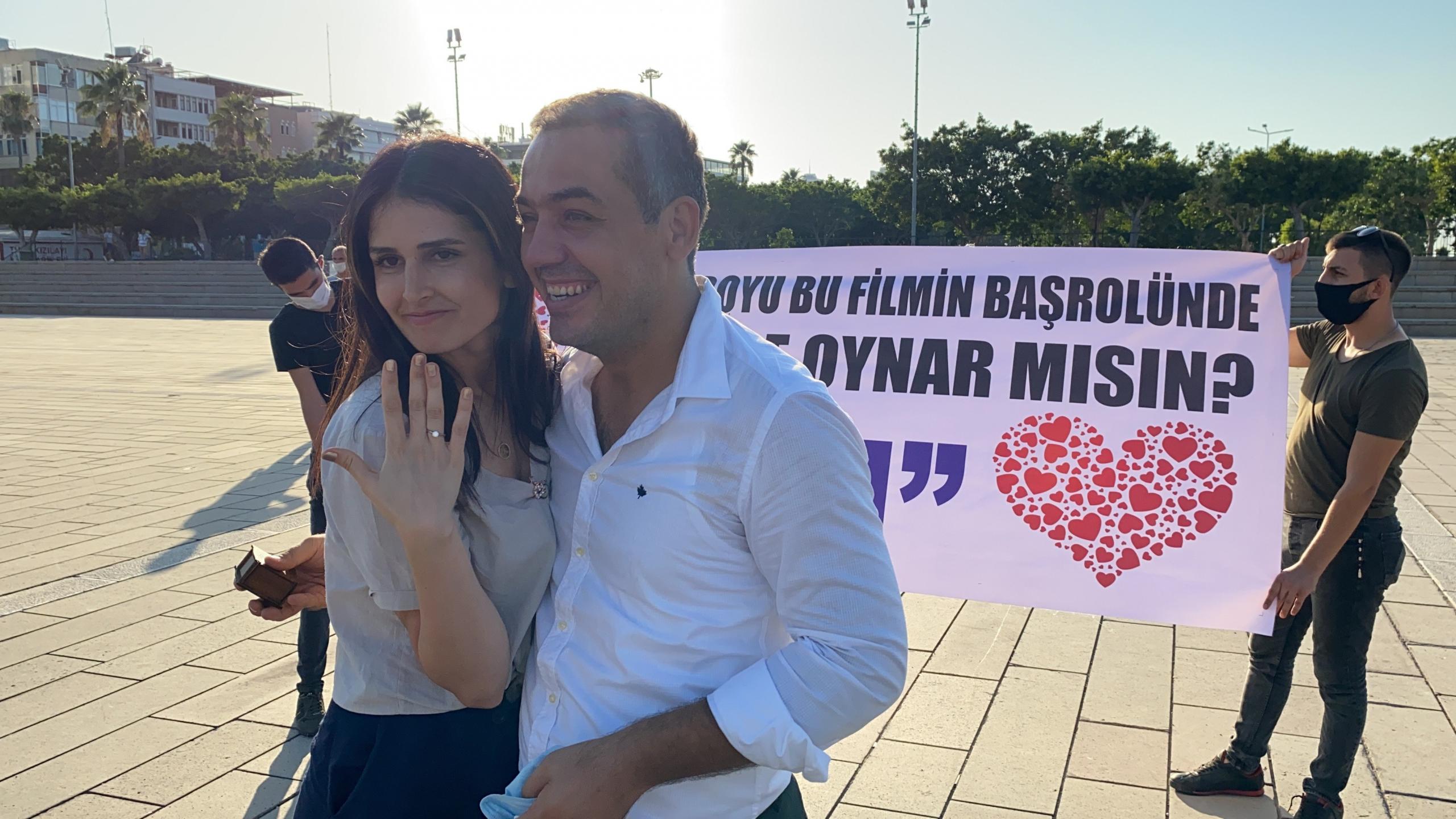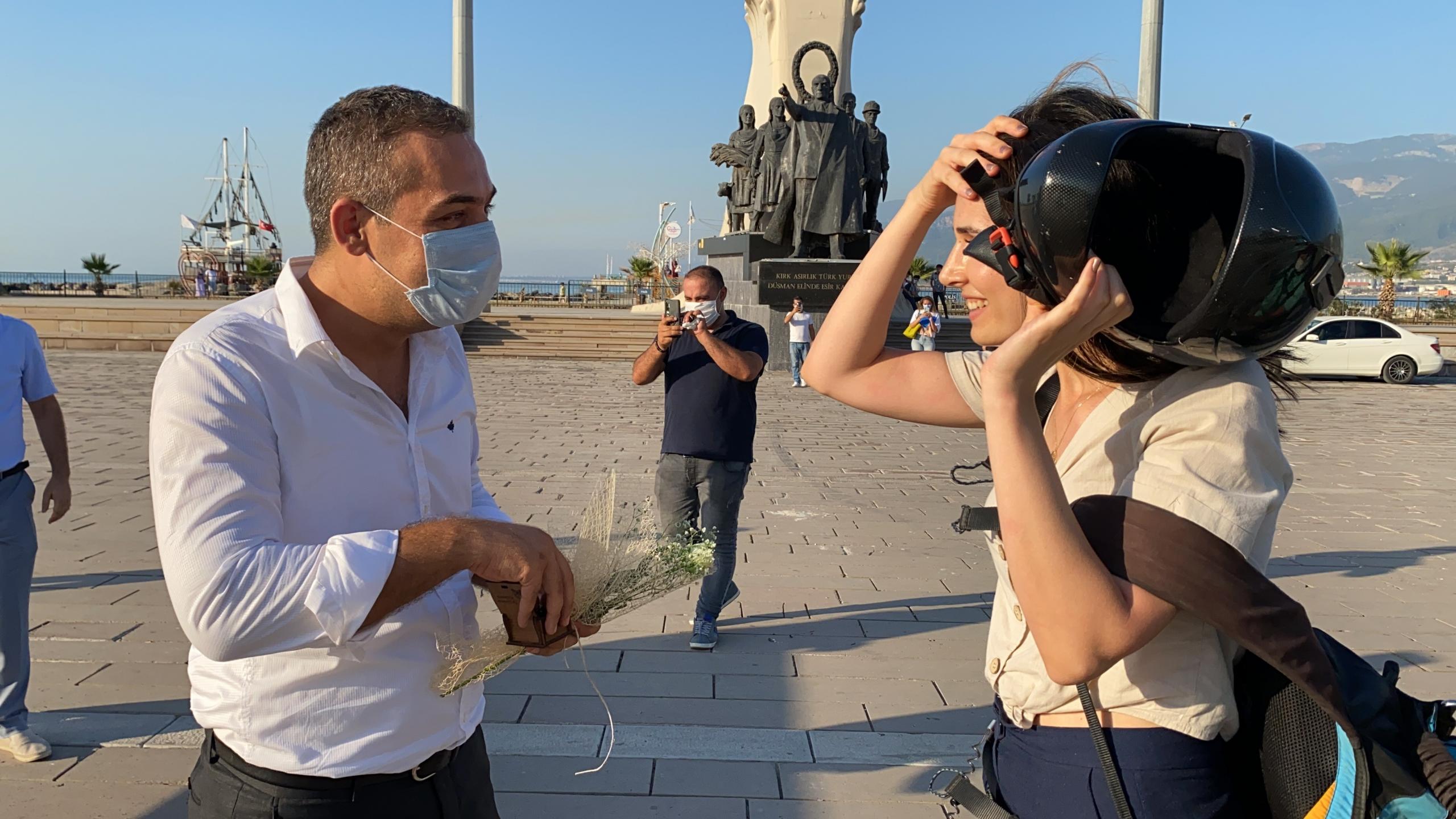 Hatay’ın İskenderun ilçesinde sağlık çalışanı çiftin yamaç paraşütü evlilik teklifiyle bitti. İl Sağlık Müdürlüğü Personel Hizmetleri Başkanı Mehmet Mustafa Tekgüzel, gönlünü kaptırdığı hemşire Gülçin Kaya’ya sürpriz bir evlilik teklifi yaptı.