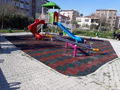 Çocuk oyun gruplarının bulunduğu alanlarda kauçuk zemin kaplama çalışmaları gerçekleştiren ekiplerimiz, çocukların en ufak bir düşme anında yara almalarını engellemek için önlem alıyor. Parklarımızda gerçekleştirilen çalışmada, çocuk oyun gruplarının bulunduğu alanlar kauçuk zeminle kaplanıyor. Kısa sürede tamamlanması planlanan çalışmaların ardından çocuklarımız daha güvenli, temiz ve sağlıklı parklarda oyun oynayıp doyasıya eğlenecek. Söz konusu çalışmamız ilçe genelinde yaygınlaştırılacak.”