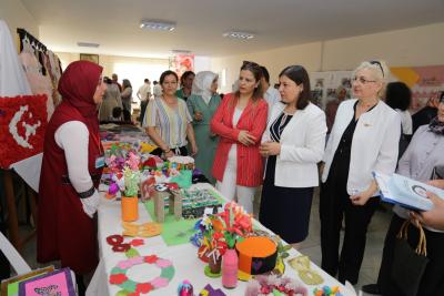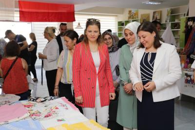 Ahşap yakma, sepet örücülüğü, takı tasarım, mefruşat ile kadın elbiseleri yapımı gibi 7 farklı alanda hazırlanan sergide 164 kursiyer hünerlerini davetlilerin beğenisine sundu.