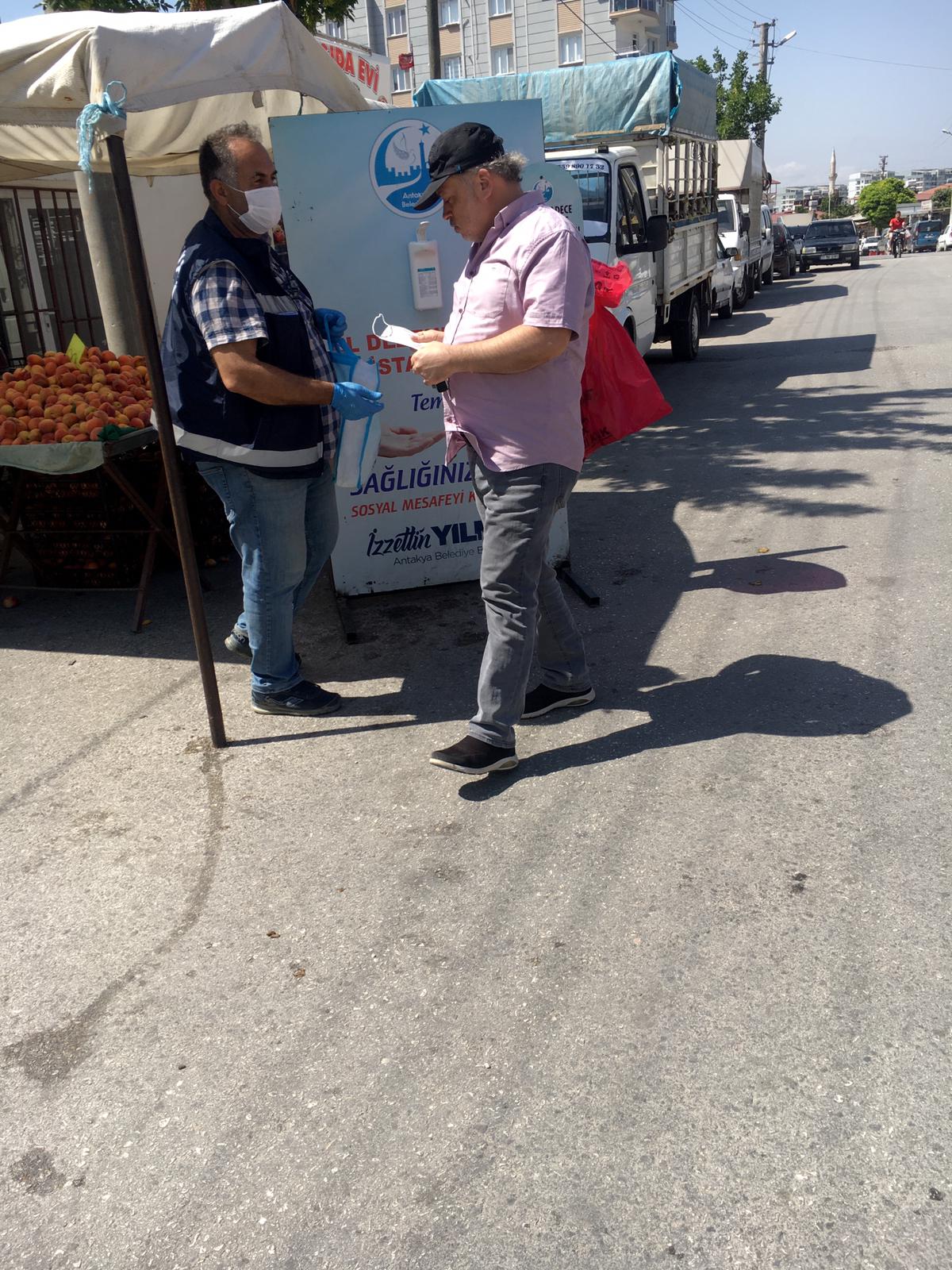 Antakya Belediyesi ekipleri İl Hıfzıssıhha kurul kararı gereğince semt pazarlarında koronavirüs ile mücadele tedbirleri çalışmalarını sıkı kontrol ile yürütüyor.