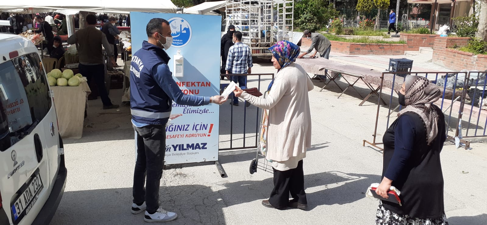 Antakya Belediyesi’nden konuyla ilgili yapılan açıklamada şunlar yer aldı; “İl Hıfzısıhha kurulu kararları gereğince tüm semt pazarlarında kontrollü giriş – çıkış, sosyal mesafe ve maske kullanımı konusunda ekiplerimiz gerekli önlemlerin alınmasını sağlıyor. Bu kapsamda pazar içerisinde belirli sayıda vatandaşın bulunması, tezgahlar arası sosyal mesafe bulundurulması, vatandaşların maske kullanımının sağlanması için çalışmalar yürütülüyor.