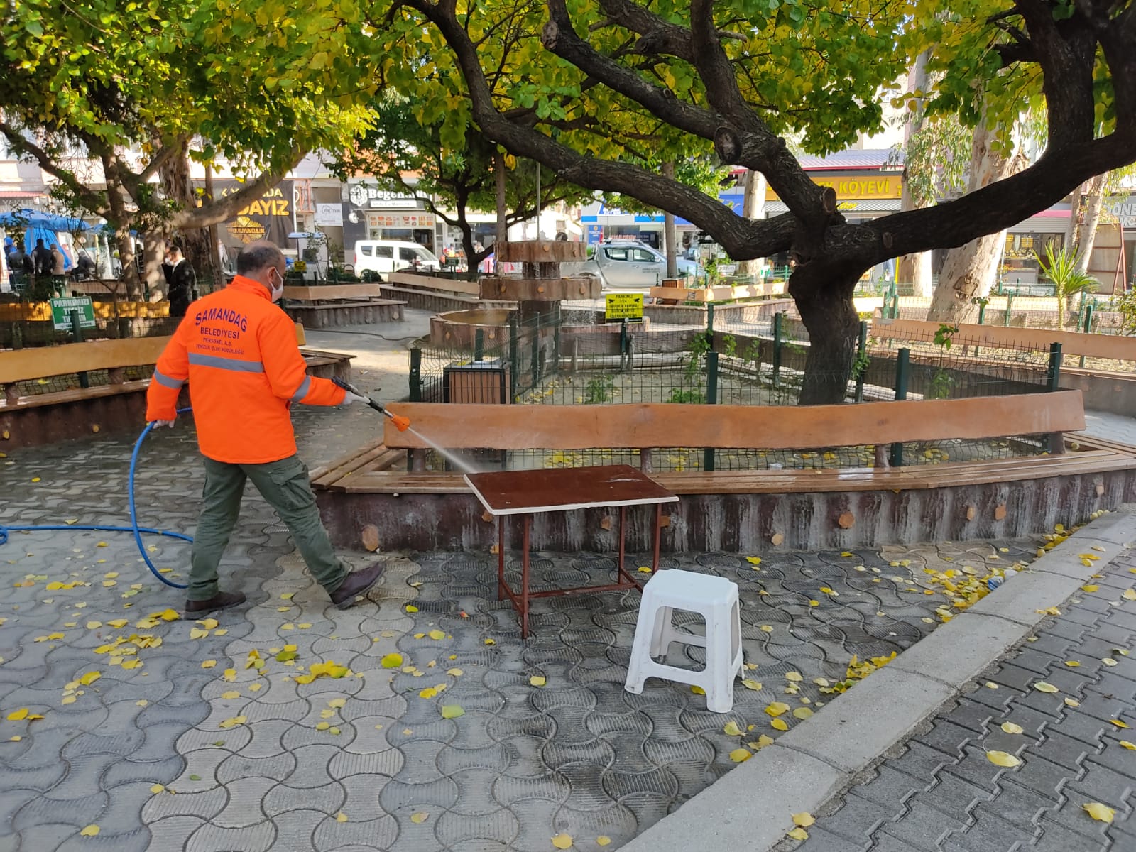 SAMANDAĞ BELEDİYESİ EKİPLERİ DEZENFEKTE ÇALIŞMALARINI SÜRDÜRÜYORLAR