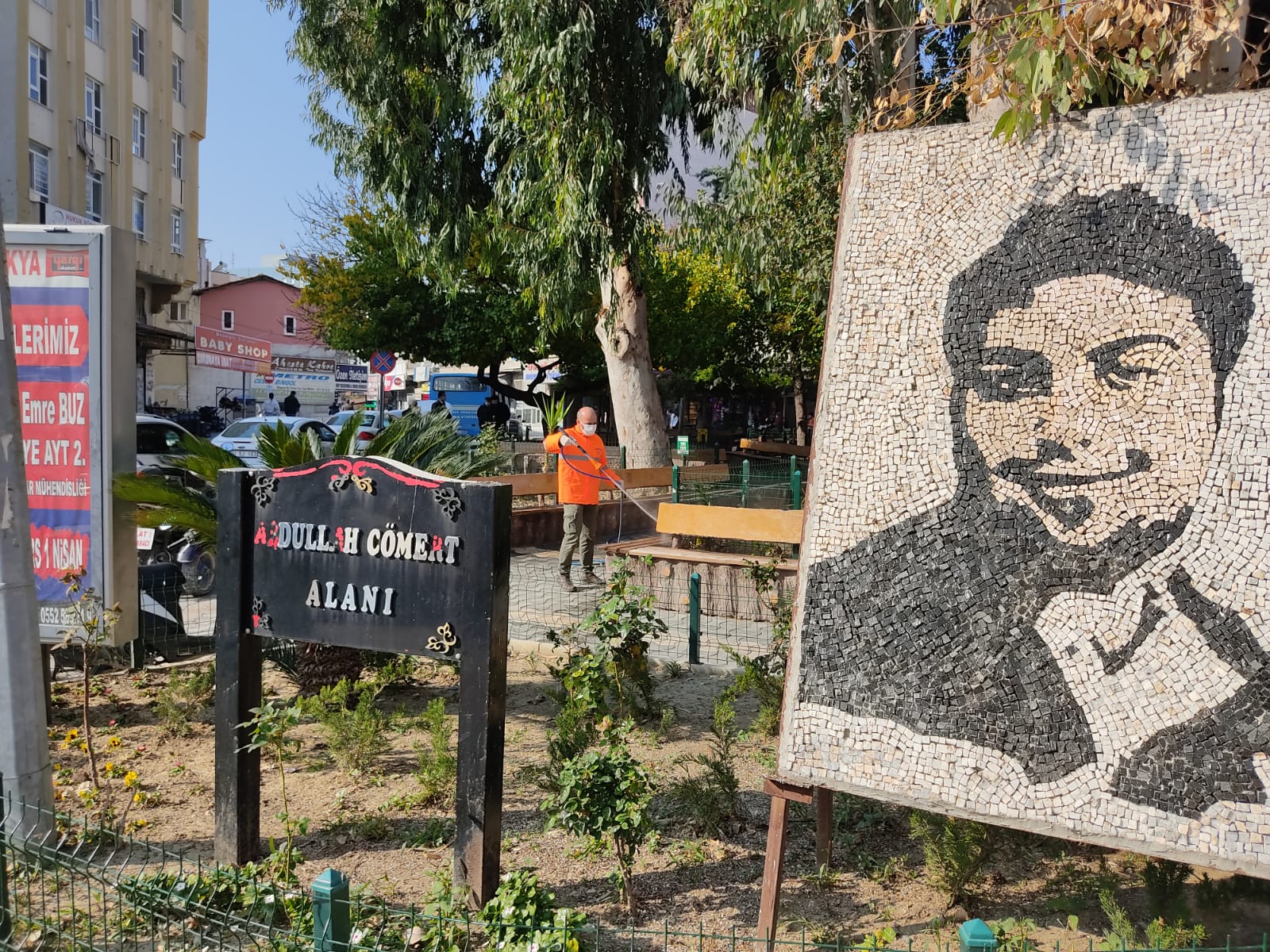 Vatandaşların sağlığı ve hijyenik ortamlarda zaman geçirmeleri için çalışmalarını sürdüren Samandağ Belediyesi Dezenfekte ekipleri tarafından son olarak Abdullah Cömert Alanı dezenfekte edildi.