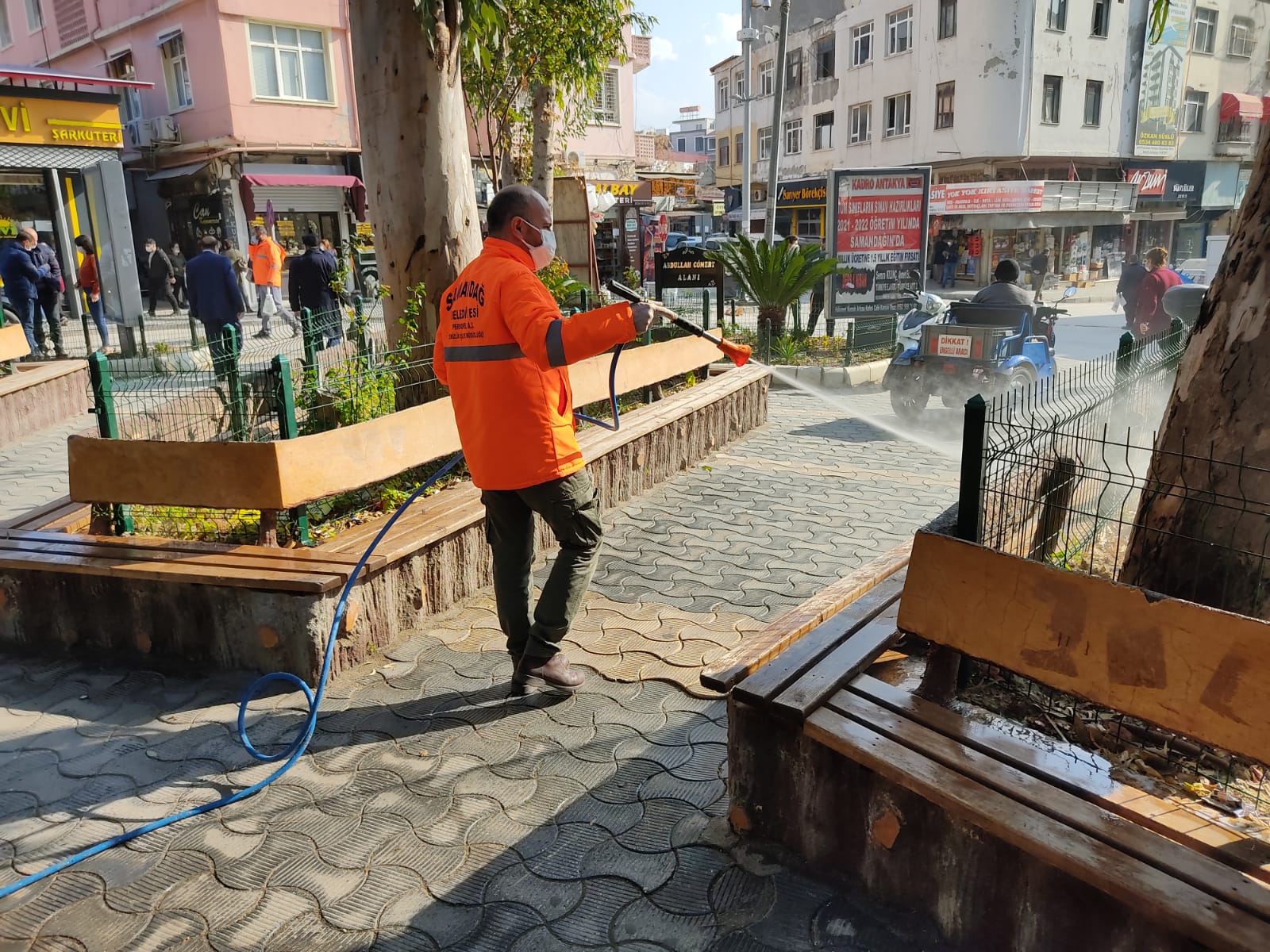 Samandağ Belediyesi Temizlik İşleri Müdürlüğüne bağlı Dezenfekte ekipleri Covid-19 tedbirleri kapsamında ilçe genelinde dezenfekte çalışmalarını sürdürüyorlar.