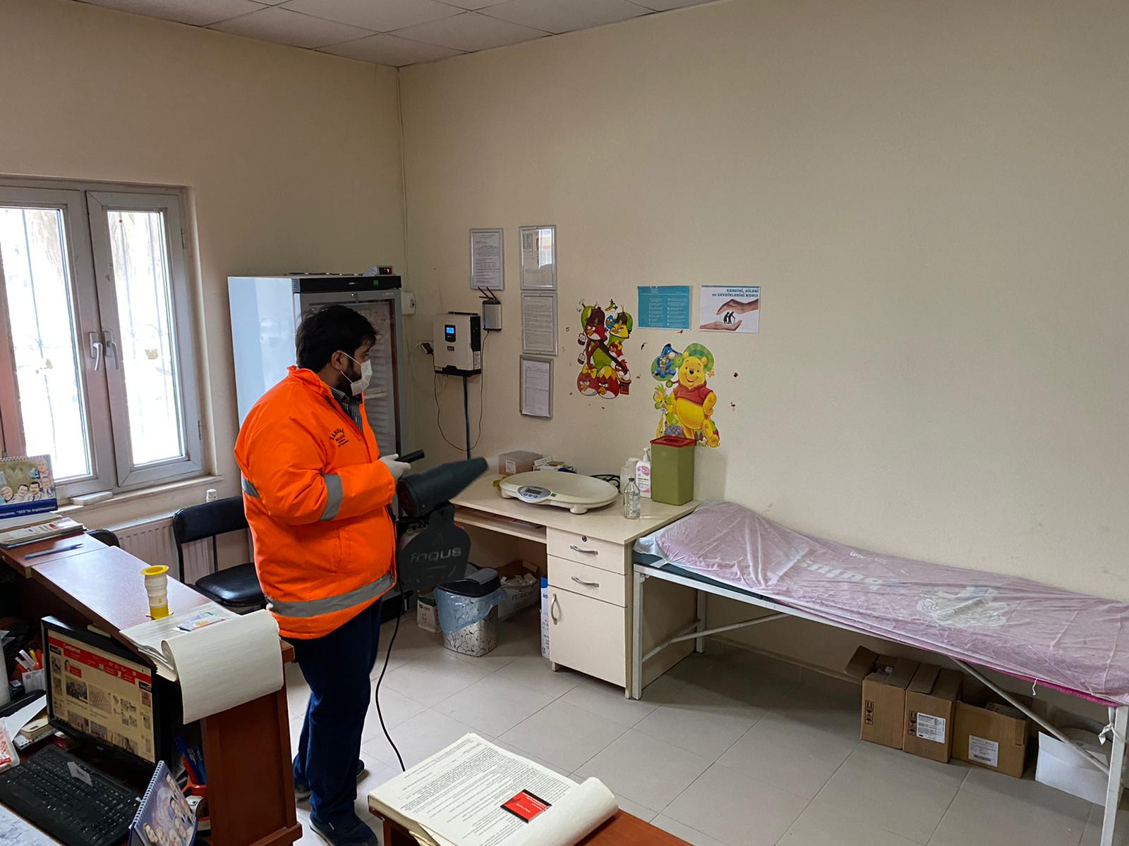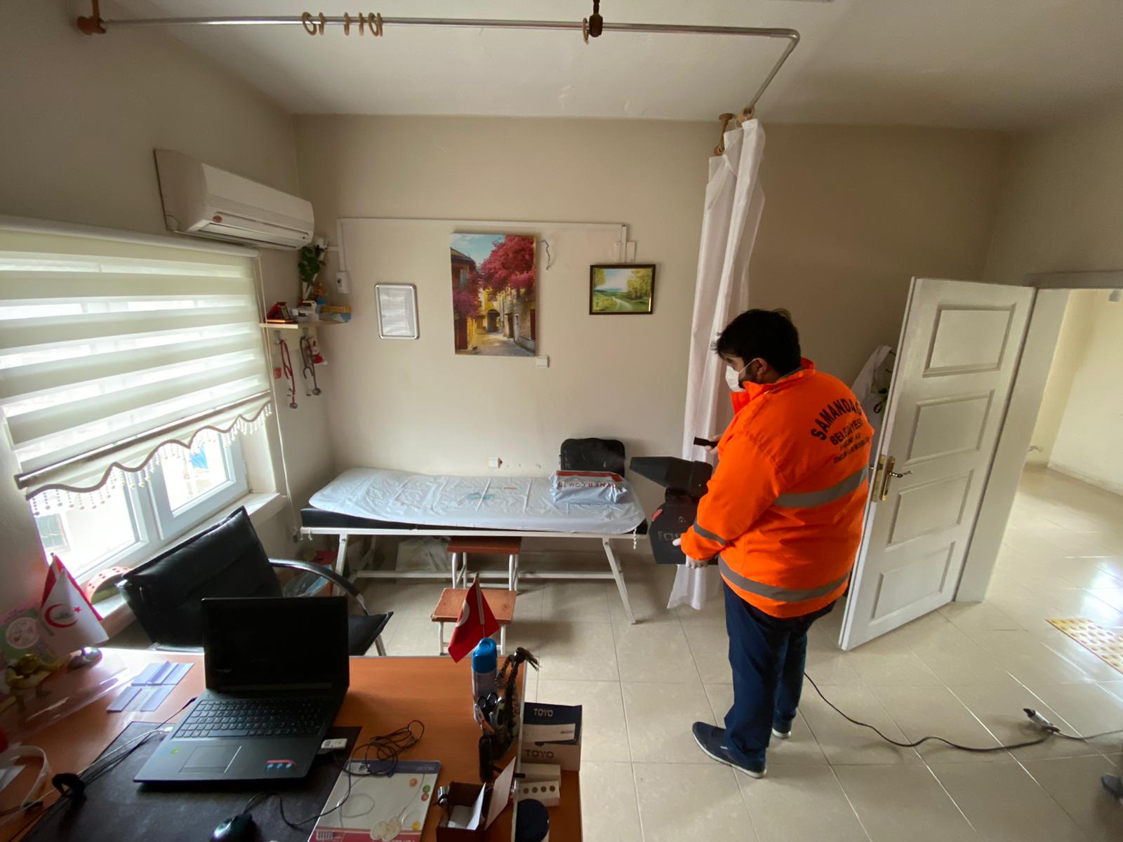Samandağ sınırları içerisinde bulunan Kamu Kurum ve Kuruluşları, Aile Sağlığı Merkezleri, Okullar, Parklar, İbadethaneler, Toplu Taşıma Araçları, Otobüs Durakları, Bankalar ve daha birçok alanda dezenfekte çalışmaları gerçekleştiren Samandağ Belediyesi Dezenfekte ekipleri son olarak Aile Sağlığı Merkezlerinde çalışmalarını gerçekleştirdiler.