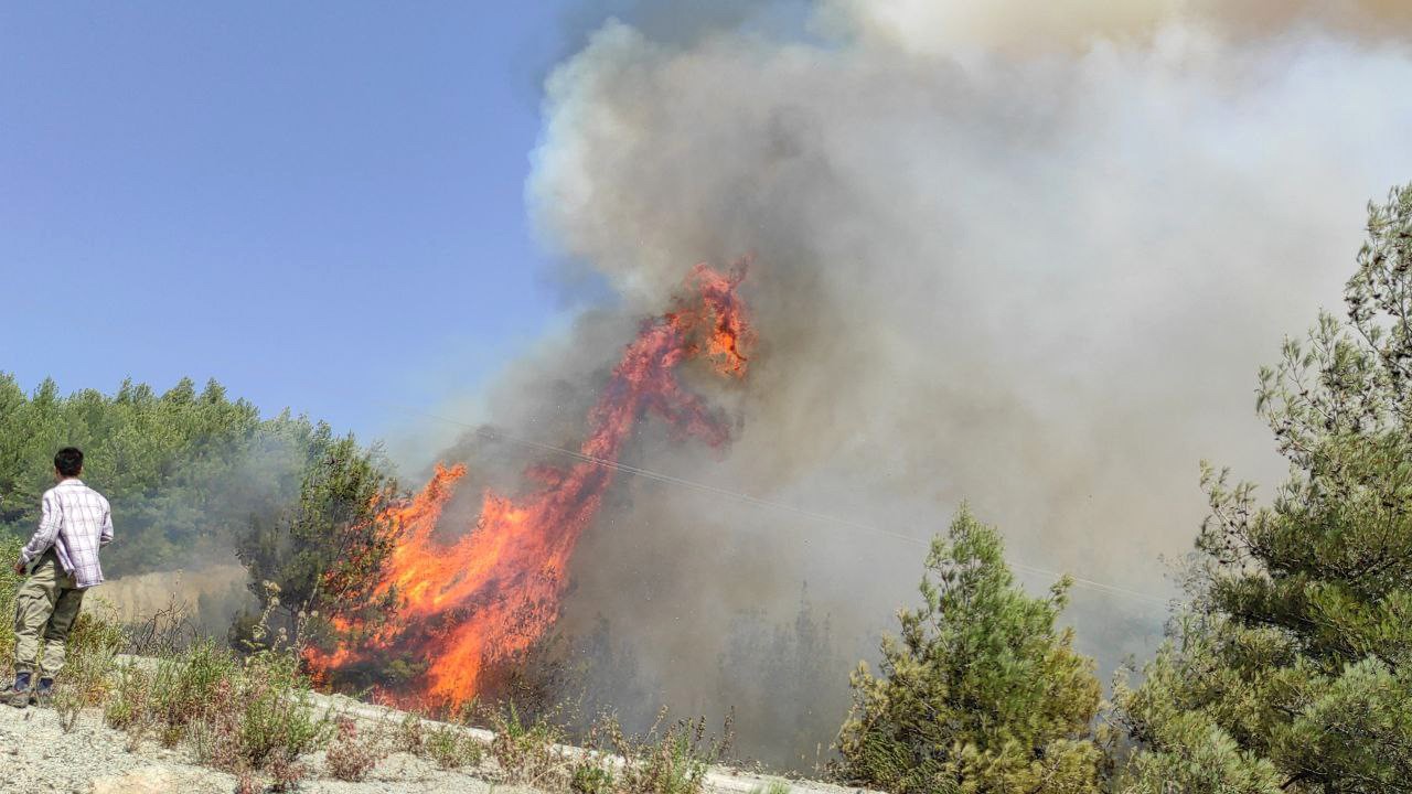 Sıcak hava ve rüzgarın etkisiyle hızla ilerleyen alevlere, ekiplerin dört koldan müdahalesi sürüyor.