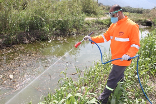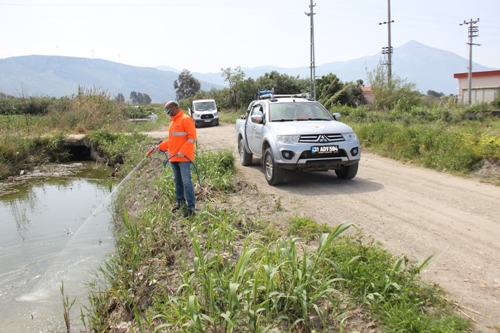 Belediyesi ekipleri tarafından, durgun sularda ve bataklık alanlarında Larva ilaçlama çalışması