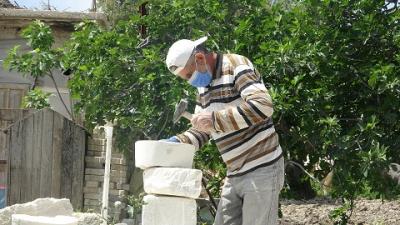 YAKLAŞIK 8 YIL ÖNCE SURİYE’DEKİ İÇ SAVAŞTAN KAÇIP, HATAY’IN ALTINÖZÜ İLÇESİNE YERLEŞEN ABDÜLVAHİT GIBEYŞ (59), TAŞLARDAN BİRÇOK MODEL YAPIP SATARAK AİLESİNİ GEÇİNDİRİYOR. (DOĞANAY YİĞİTOĞLU/HATAY-İHA)