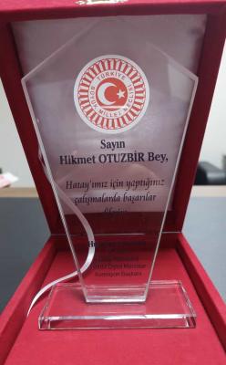 Hatay’a kazandırılan çok sayıda projede gerek bizzat takip ederek, gerekse de katkı sunarak imzası bulunan Vekil Yayman, 10 Ocak Çalışan Gazeteciler Günü çerçevesinde yaptığı ziyarette gazetemiz imtiyaz sahibi gazeteci Hikmet Otuzbir’e plaket takdiminde bulundu.
