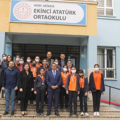 Müdür Tecimen, son olarak Ekinci Atatürk Ortaokulu ziyaret ederek Futsal Hatay Şampiyonu olan öğrencilere madalyalarını takdim etti. Tecimen’e okul ziyaretinde İlçe Milli Eğitim Şube Müdürü Neslihan Küçük Doğan ve İlçe Milli Eğitim Şube Müdürü Ahmet Şanal eşlik etti.