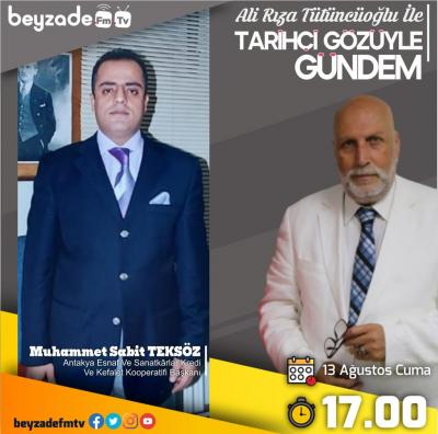 Hatay’ın yaşayan hafızası tarihçi Ali Rıza Tütüncüoğlu, radyo programında ağırlayacağı Teksöz ile Antakyalı esnafın sorunlarını ve çözüm yollarını değerlendirecek. “Ali Rıza Tütüncüoğlu ile tarihçi Gözüyle Gündem programında Hatay’ın gündemine ışık tutulacak. Tütüncüoğlu’nun sorularını yanıtlayacak olan Kooperatif Başkanı Sabit Teksöz, vatandaşlardan sosyal medya üzerinden gelen soruları da yanıtlayacak. Canlı olarak yayınlanacak program bugün saat 17.00’de Beyzade FM’de olacak. Program aynı zamanda sosyal medyadan da canlı olarak izlenebilecek. Sosyal medya hesapları; twitter.com/beyzadefmtv, facebook.com/beyzadefmtv, youtube.com/beyzadefmtv, instagram.com/beyzadefmtv” olarak verildi. Gündeme ve yakın geçmişe ışık tutacak programı kaçırmayın.