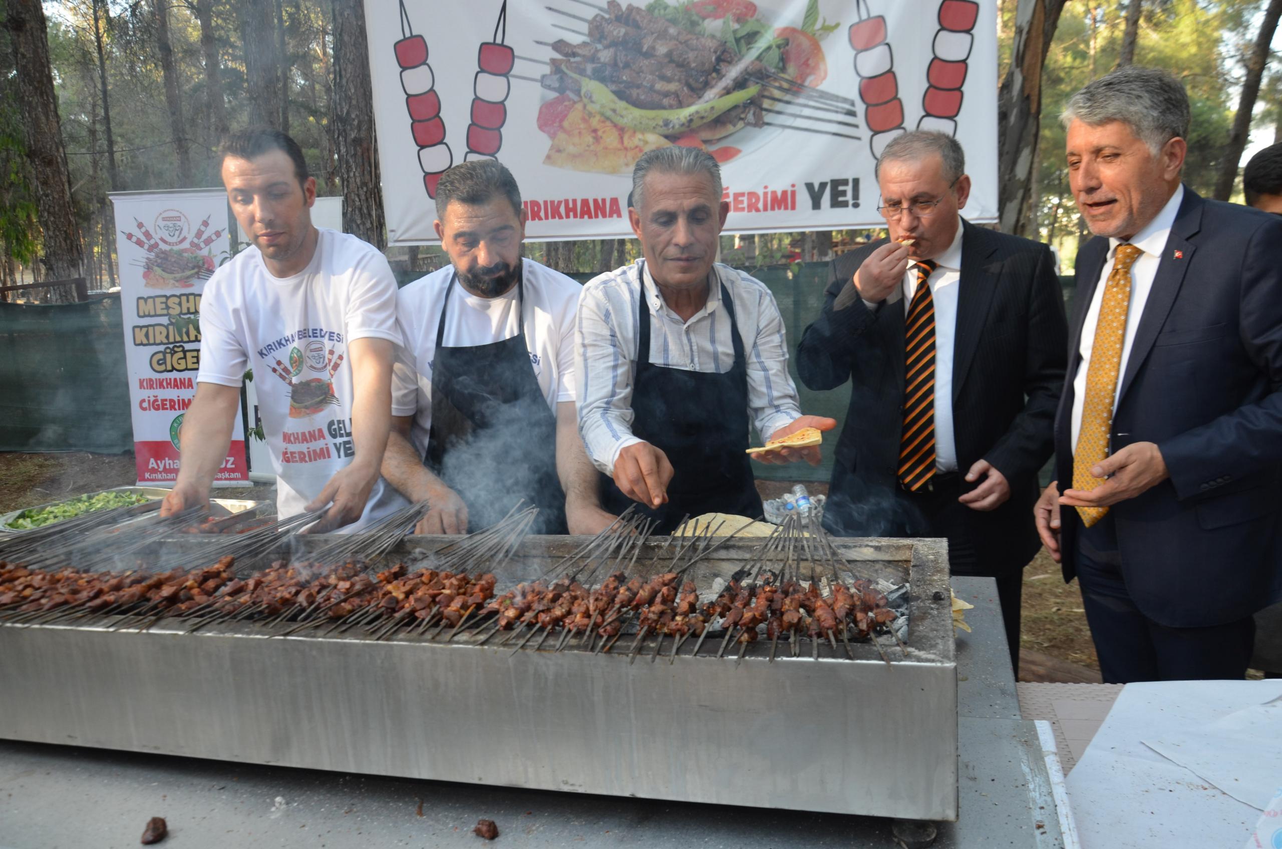 HATAY’DA BU YIL İLKİ GERÇEKLEŞTİRİLEN “TÜRK MUTFAĞI HAFTASI” ETKİNLİKLERİNİN SON GÜNÜNDE KIRIKHAN İLÇESİNDE KUZU CİĞER TANITIMI YAPILDI. (İSMET BİÇEN/HATAY-İHA)