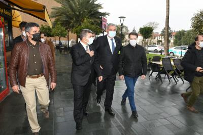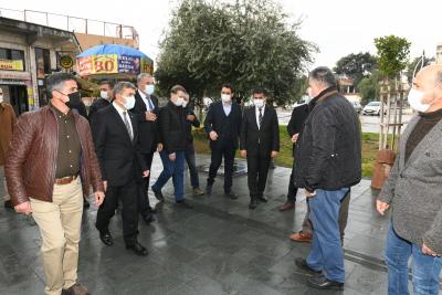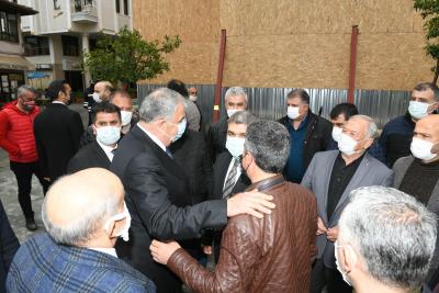 Köprübaşı ve Hürriyet (Saray) Caddesi esnafları ile bir araya gelerek esnafın taleplerini dinleyen AK Parti Hatay İl Başkanı Adem Yeşildal ve Antakya Belediye Başkanı İzzettin Yılmaz, Vakıf İşhanı yerine yapılacak olan yeşil alan hakkında da istişarelerde bulundular.