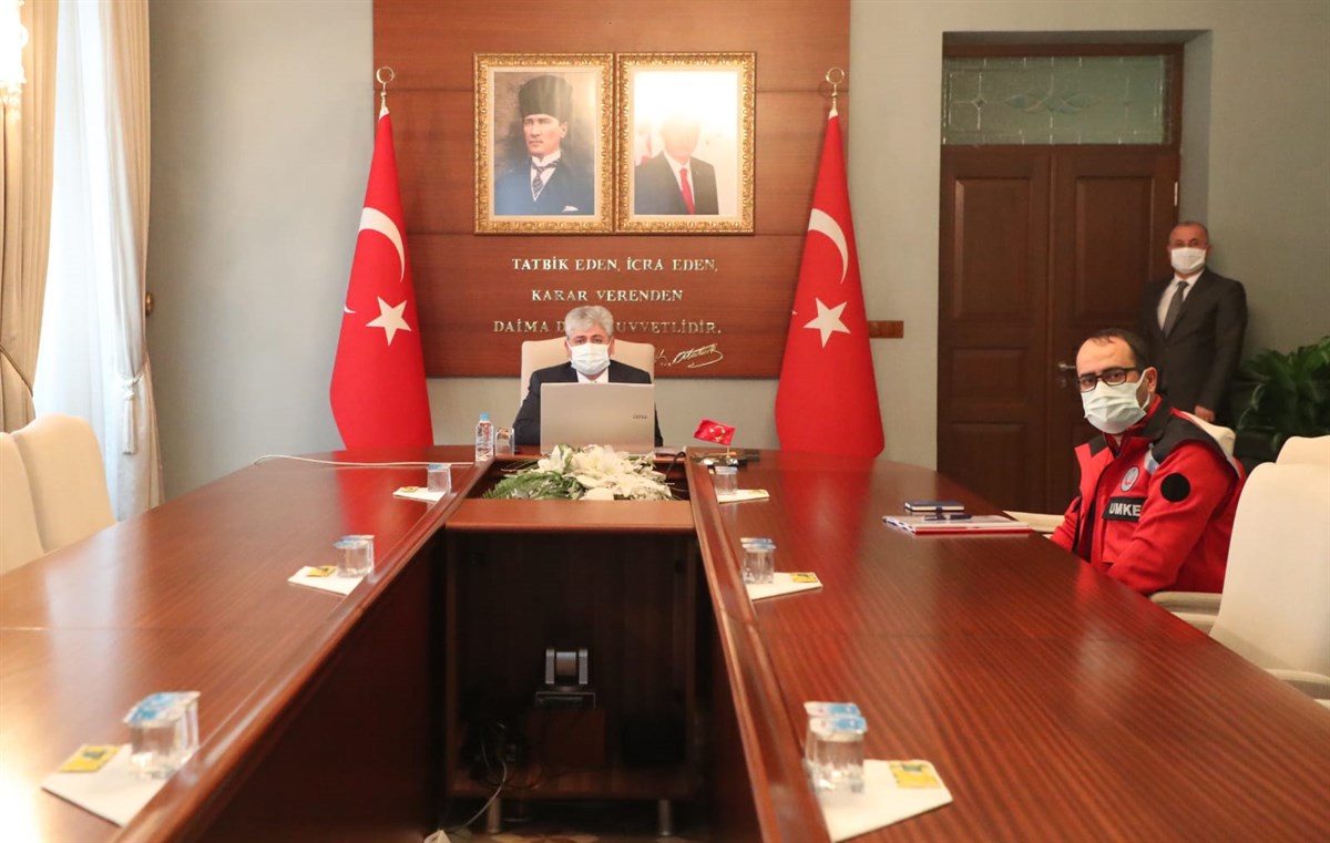 Hatay Valisi Rahmi Doğan Başkanlığında, koronavirüs salgınına karşı mücadele kapsamında, alınan tedbirler ile ilgili Video Konferans Sistemi (VKS) üzerinden toplantı gerçekleştirdi.