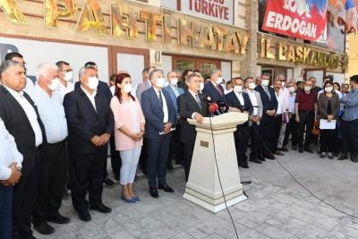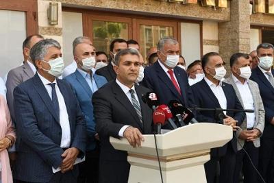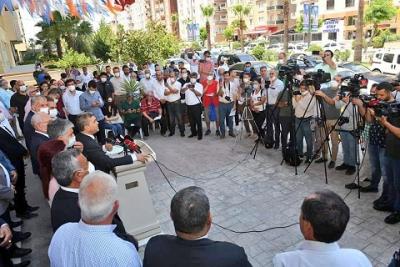 Başkan Yeşildal’ın basın açıklamasına İlçe Belediye Başkanları, İlçe Başkanları, Kadın ve Gençlik Kolları İl Başkanları, Büyükşehir Belediye Meclis Üyeleri ve İl yönetimi de destek verdi.