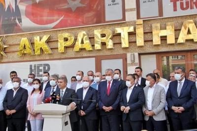 AK Parti Hatay İl Başkanı Adem Yeşildal, AK Parti İl Binası önünde DSİ ve HBB arasındaki su sorununa yönelik bir basın açıklaması yaptı.